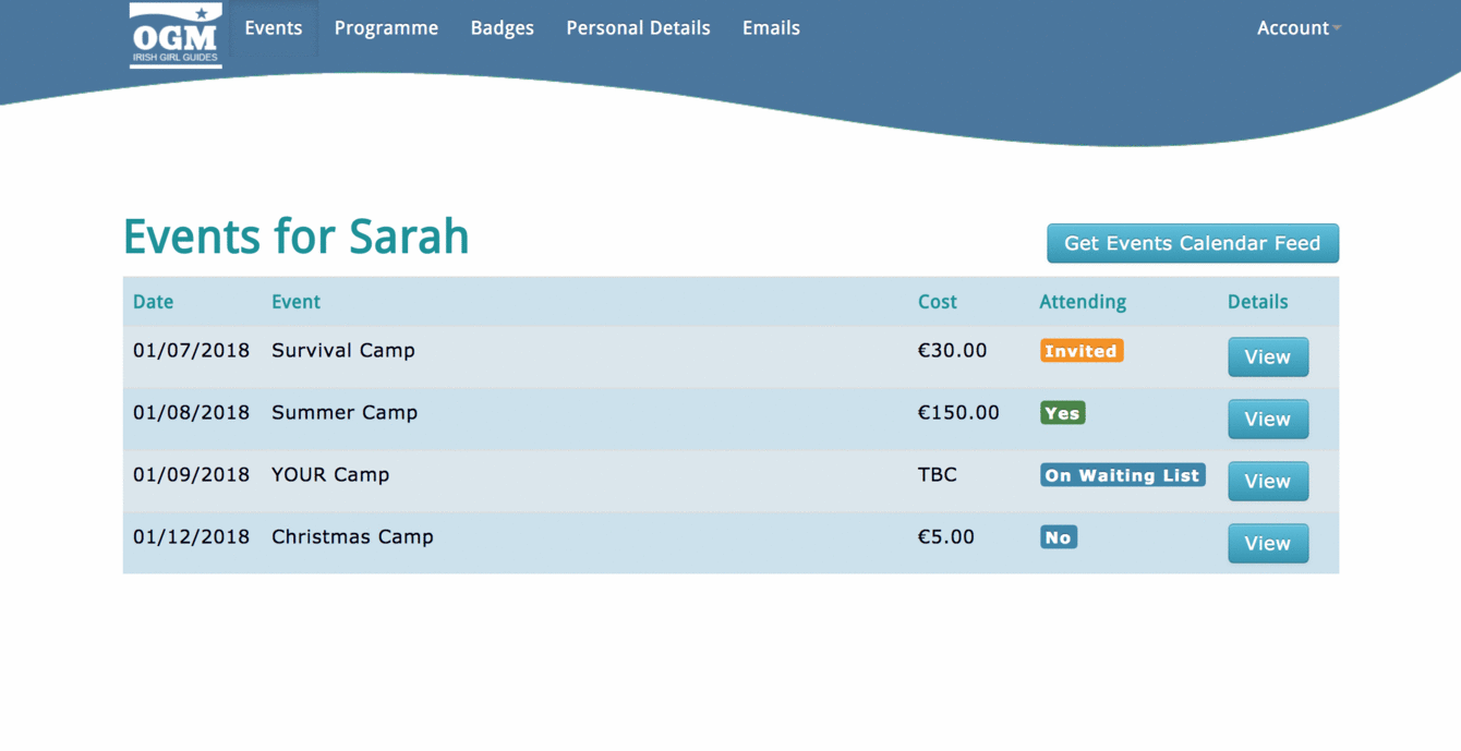 The parent portal allows parents to help you with your administration and gives them the tools to sign up to events, see the programme, view badge progress and more.